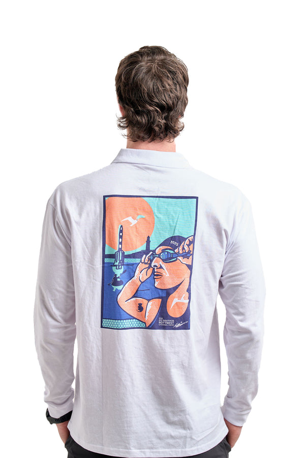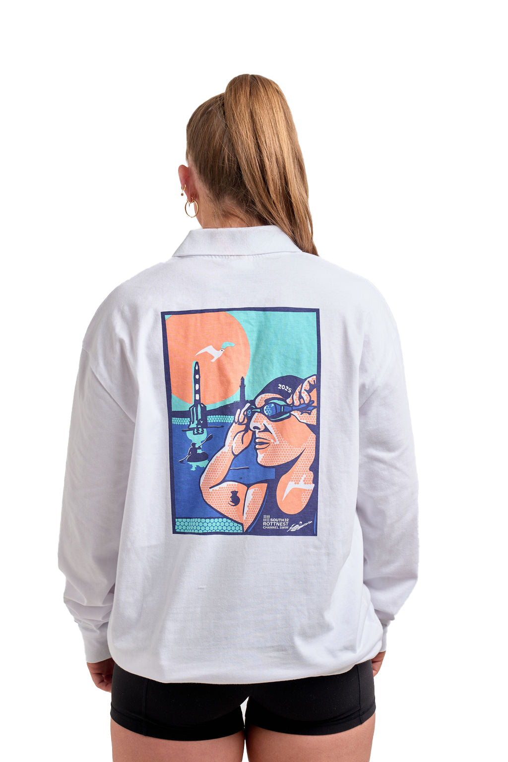 - 2025 exclusive "pop-art" print - featuring a paddler passing the iconic Cottesloe pylon, the Bathurst Lighthouse seen in the background, and the bright sun.